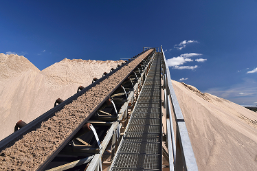 Conveying chemical products, fertilizers, and raw materials. Requires belts with chemical and oil resistance.