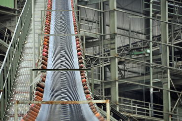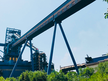 Transport of coke, sinter, iron ore, and scrap. Heat-resistant rubber belts used in high-temperature environments.